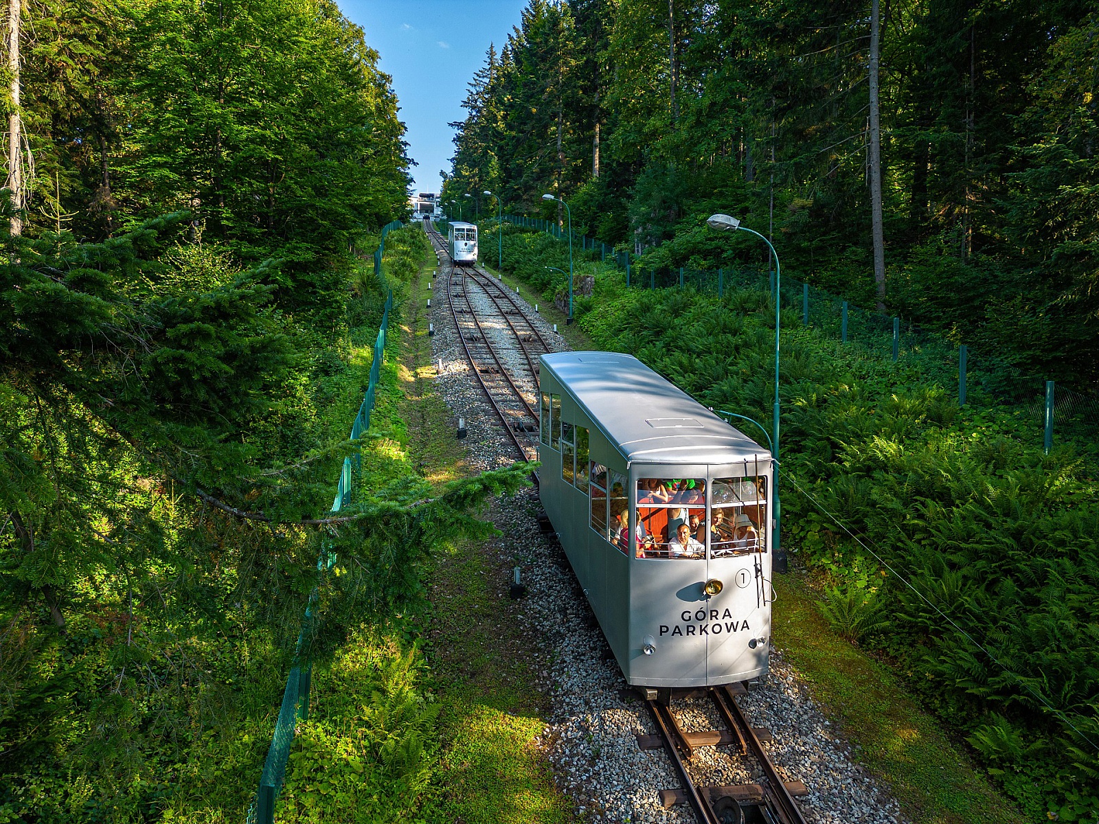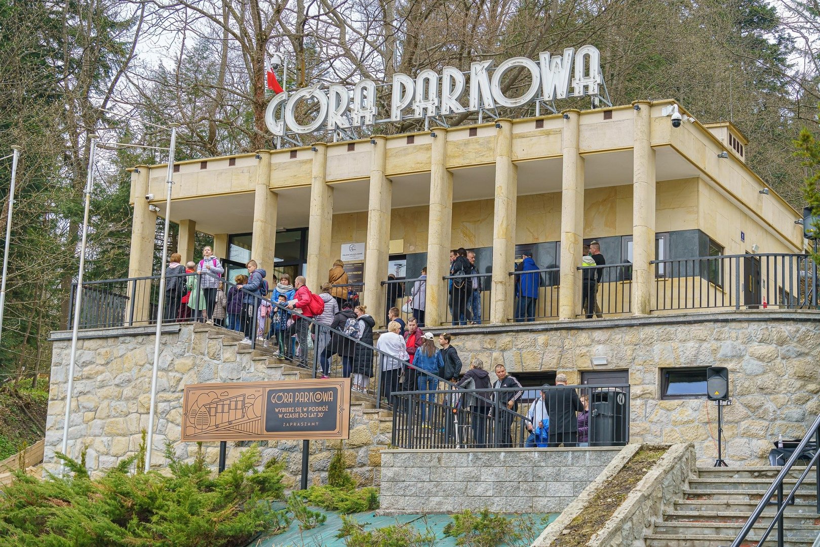 Szczyt Góry Parkowej liczy sobie 742 m n.p.m. Spod Góry Parkowej biją źródła leczniczych wód mineralnych z których słynie uzdrowisko. Park na stokach góry jest doskonałym terenem spacerowym znajdującym się w Centrum Krynicy. Został założony w roku 1810 roku. Kolejka linowo-terenowa uruchomiona 17 grudnia 1937 r. Krynicka kolejka była wtedy drugim tego typu obiektem w Europie. Na szczycie góry znajduje się Parkowa Restauracja, Parkowa Kawiarnia w Pergoli, znane dzieciom Rajskie ślizgawki. Ogród Żywiołów - park wyjaśniający działanie czterech żywiołów: powietrza, ziemi, ognia i wody.